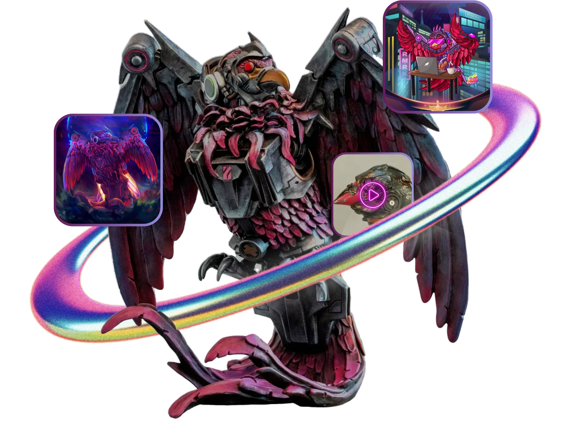 NFTs with multiple outputs such as displayed media files. Create NFTs such as: