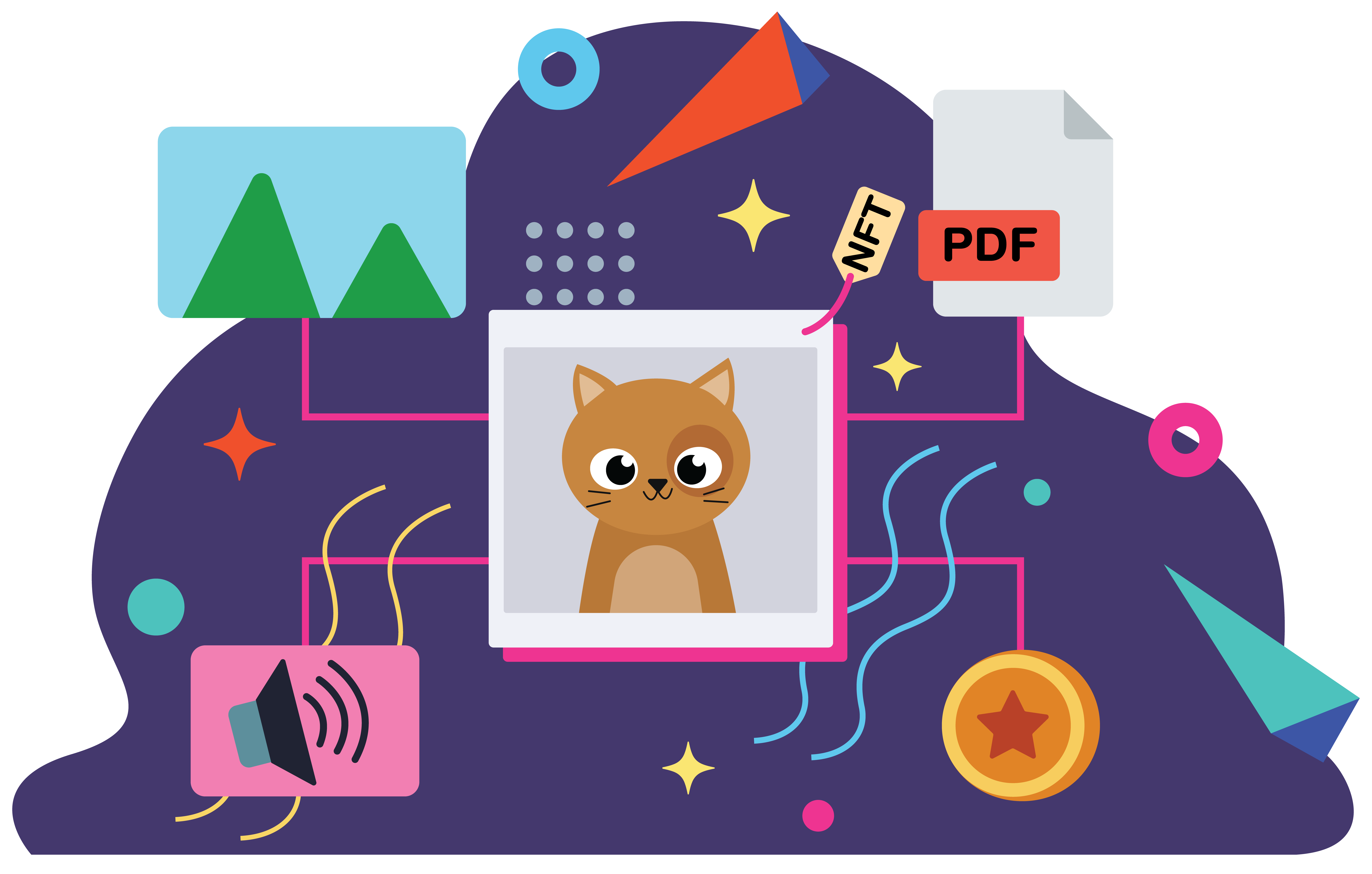 While this method has been effective, considering that most forms of art can be shared in a single file, let's imagine the possibilities of having multiple assets within a single NFT. Each asset would have standalone functionality depending on the platform or tool utilized. For instance, a book writer could create an NFT containing the book cover as the main image and include assets like the book's PDF, an audio recording of the author reading the book, and illustrations that complement the story. In this scenario, each asset could be utilized based on the specific need or tool employed. A PDF reader (e.g., Kindle) would access the PDF file, an audio app (e.g., Spotify, Audible) would play the audio recording, and a visual display would showcase the illustrations as slides.
